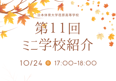 2025年10月24日(金)に開催予定の 第11回ミニ学校紹介についてお知らせいたします。 【予約期間】 10月10日(金)20:00 ~ 10月24日(金)14:59 ...